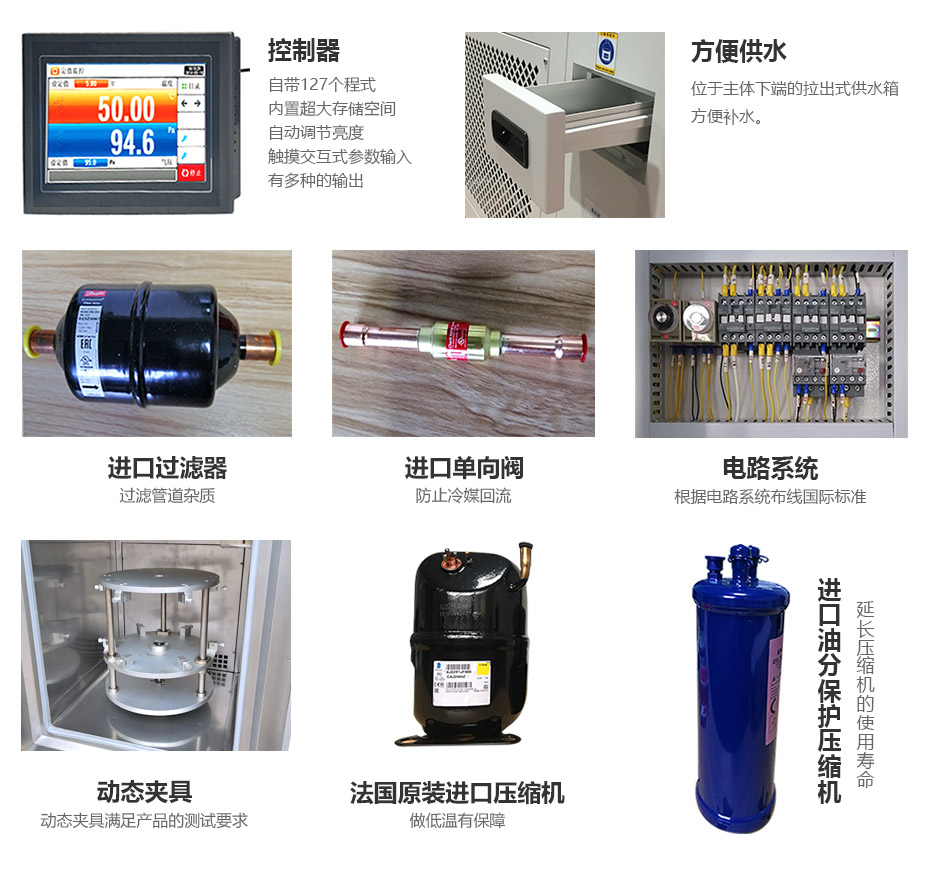 | 保护装置 | 压缩机过热、压缩机过流、压缩机超压、可调式超温保护装置、空气调节通道极限超温、风机电机过热、总电源相序和缺相保护、漏电保护、加热管无风干烧保护、过载及短路保护、断电保护 |