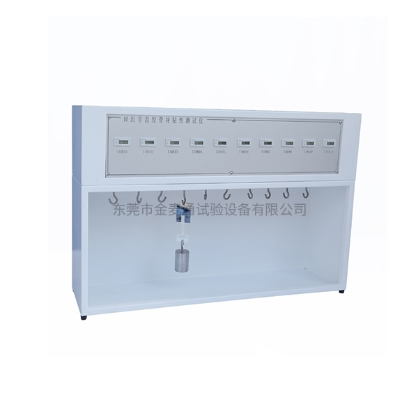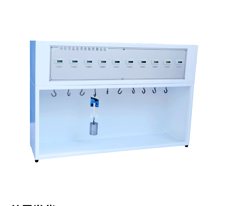 常温型胶带保持力试验机针对胶带的粘着力做静态负荷试验,在一定的荷重下自动记录胶带所能保持的时间,以确认胶带粘着的时效。裁1英寸宽的长条状胶带贴于规定的SUS#304不锈钢板上,经2kg的标准滚轮以每分钟300mm的速度来回碾压三次,将钢板挂于试验机上,加上规定的砝码,当胶带自钢板上掉落后,计时器会自动保留试验时间,用来评定胶带粘着的持久性。常温型胶带保持力试验机广泛应用为:胶粘带,保护膜,不干胶,标签,泡棉,胶粘剂等胶粘制品行业 。
