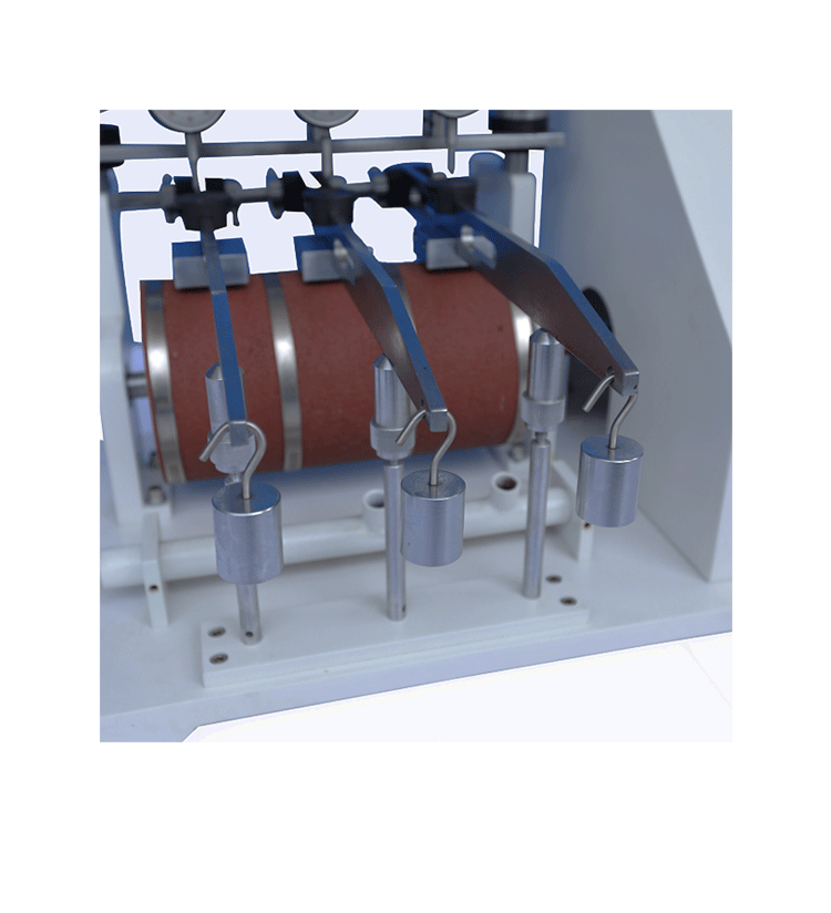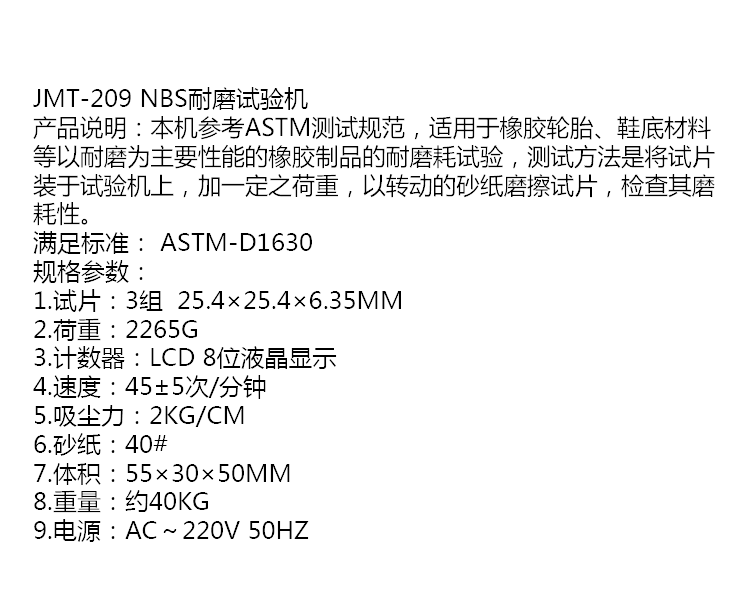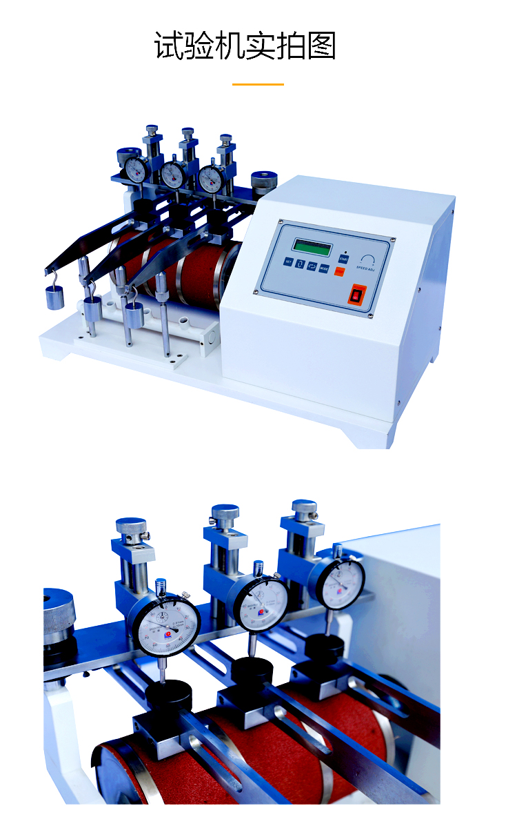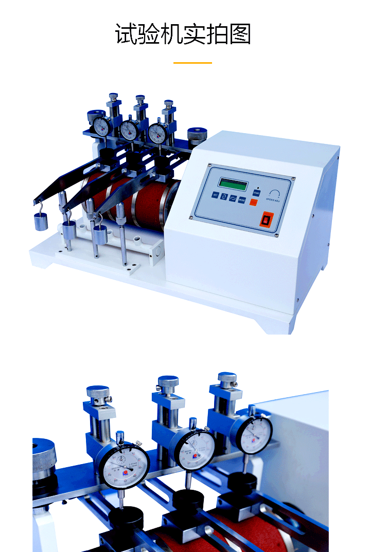 本机参考ASTM测试规范,适用于橡胶轮胎、鞋底材料等以耐磨为主要性能的橡胶制品的耐磨耗试验,测试方法是将试片装于试验机上,加一定之荷重,以转动的砂纸磨擦试片,检查其磨耗性。