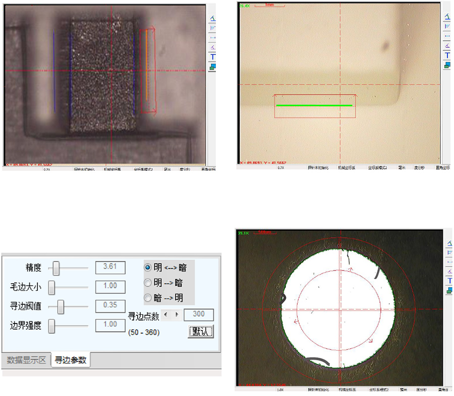 能够抓取很弱的边缘,可任意设定寻边方向,避免寻边错误,可灵活设置寻边参数,去除杂点及毛边影响。