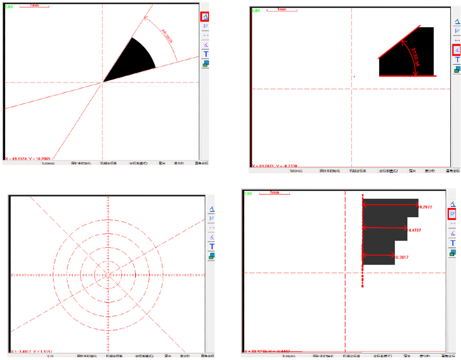 根据元素的实际特征,每种元素可采用多种测量方法,寻边结束即可直接获取元素的坐标值、长度、面积、体积等数据。