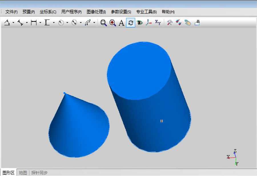 当Z轴增配光谱共焦位移传感器后,还可对三维元素进行测量,例如:台阶、圆柱、圆锥、圆球、三维空间内的面积等。