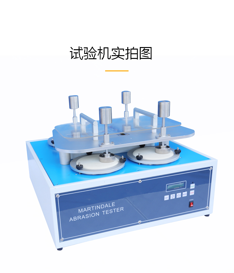本机可测试纺织品、鞋类的外层、衬里,衬底和类似织物的耐磨性。测试时磨锤以变化性的方向(Lissajous图形),反复磨擦试片在规定的磨擦次数下,测出其磨耗的特征。